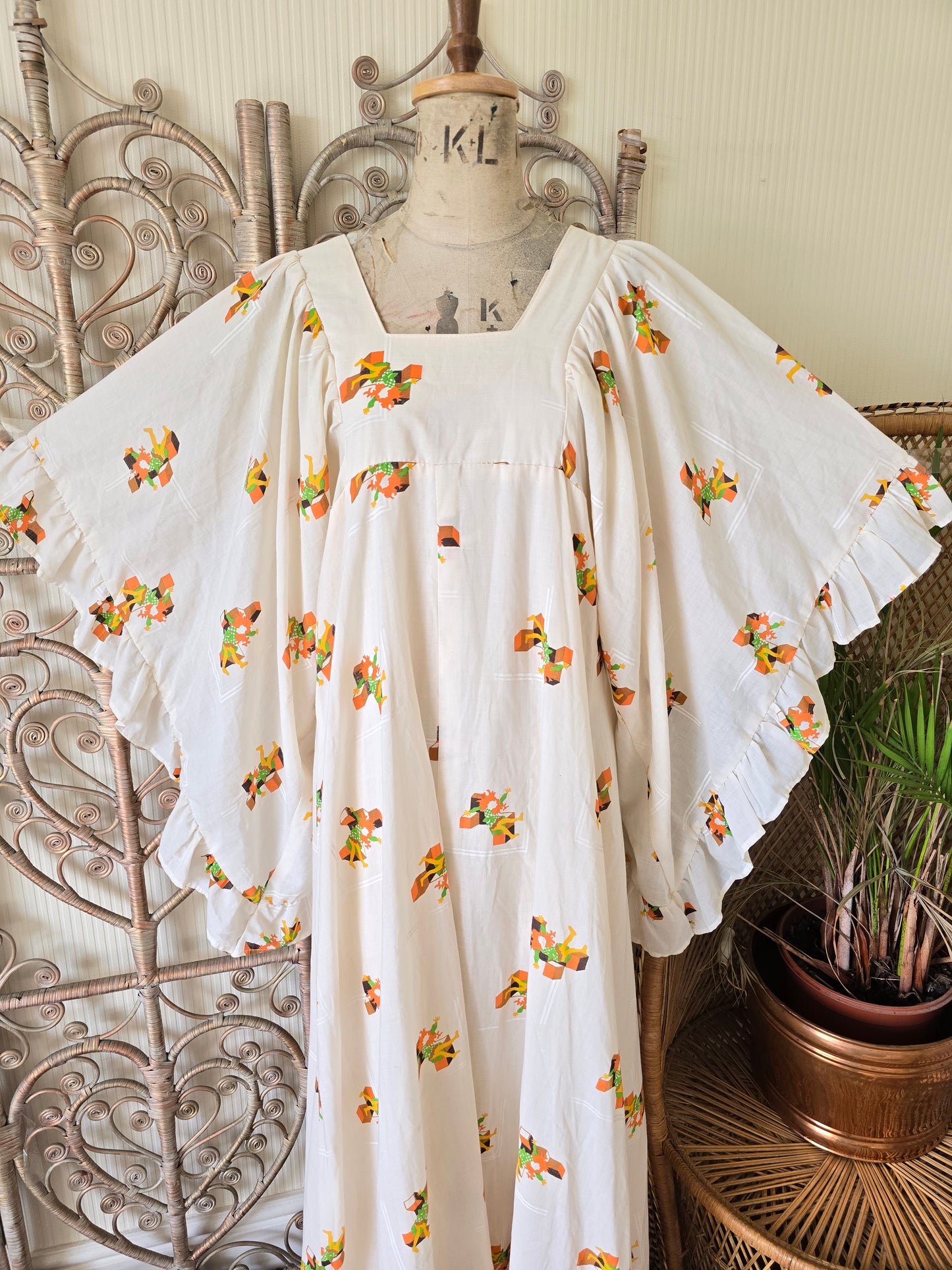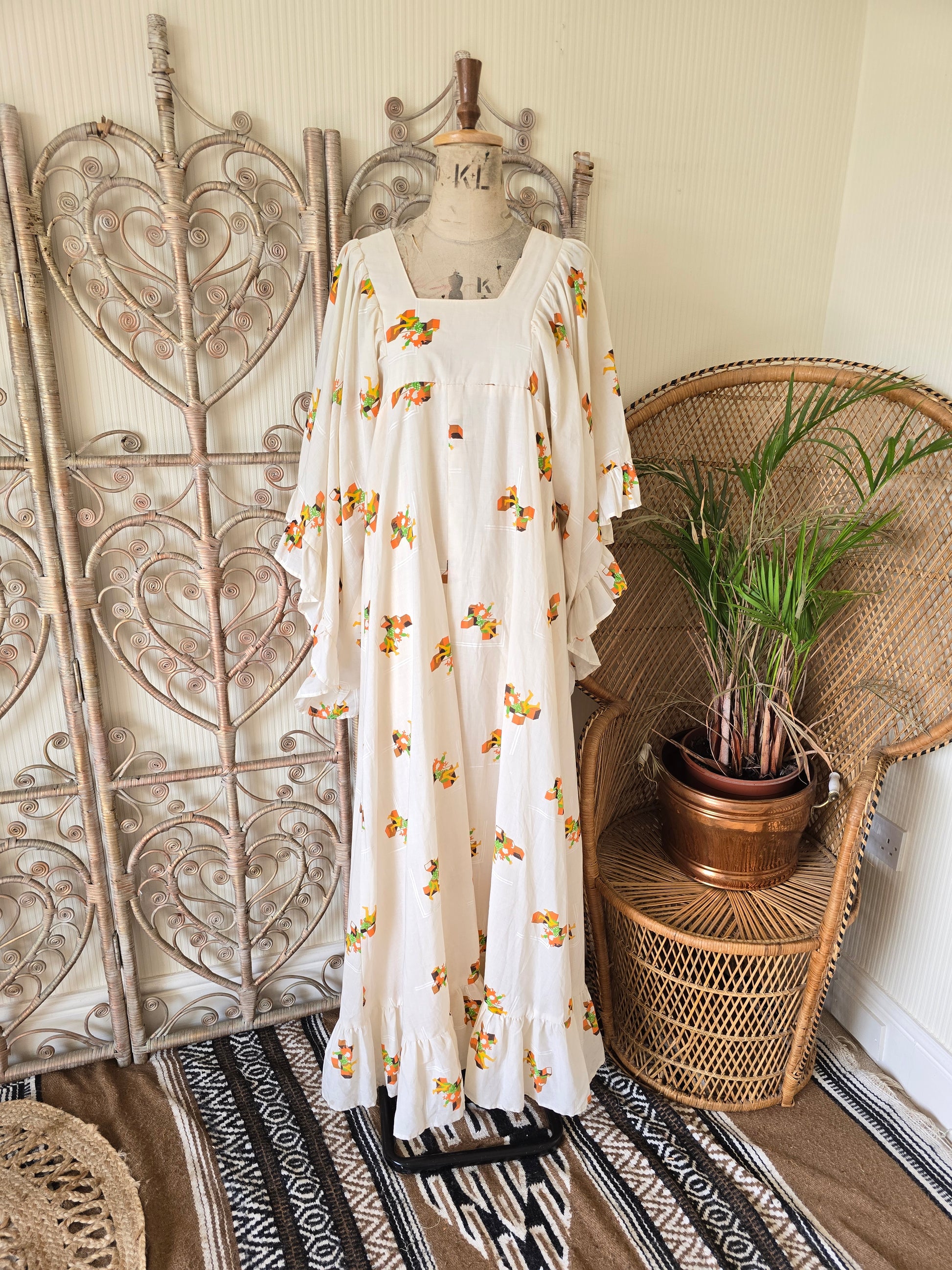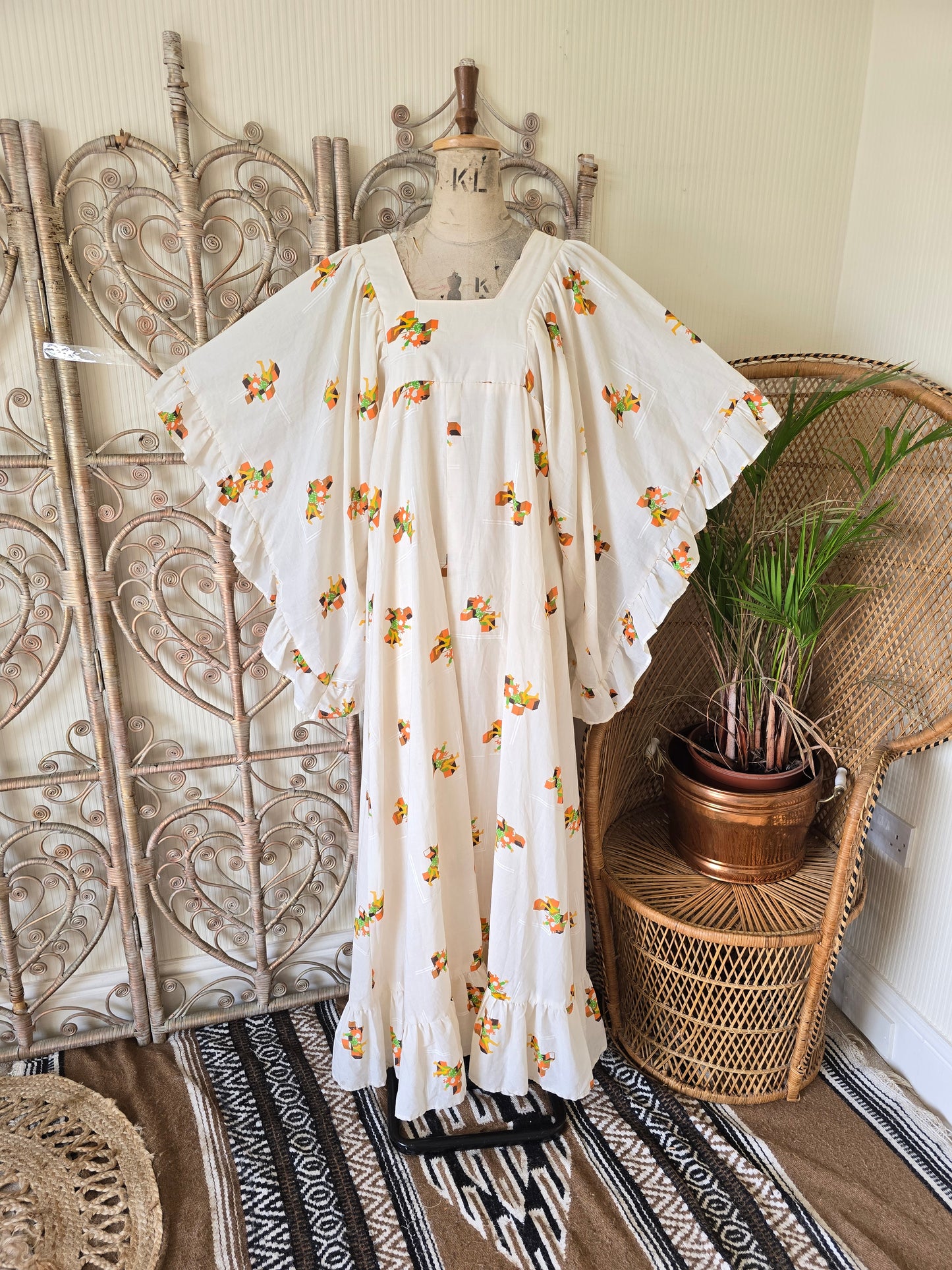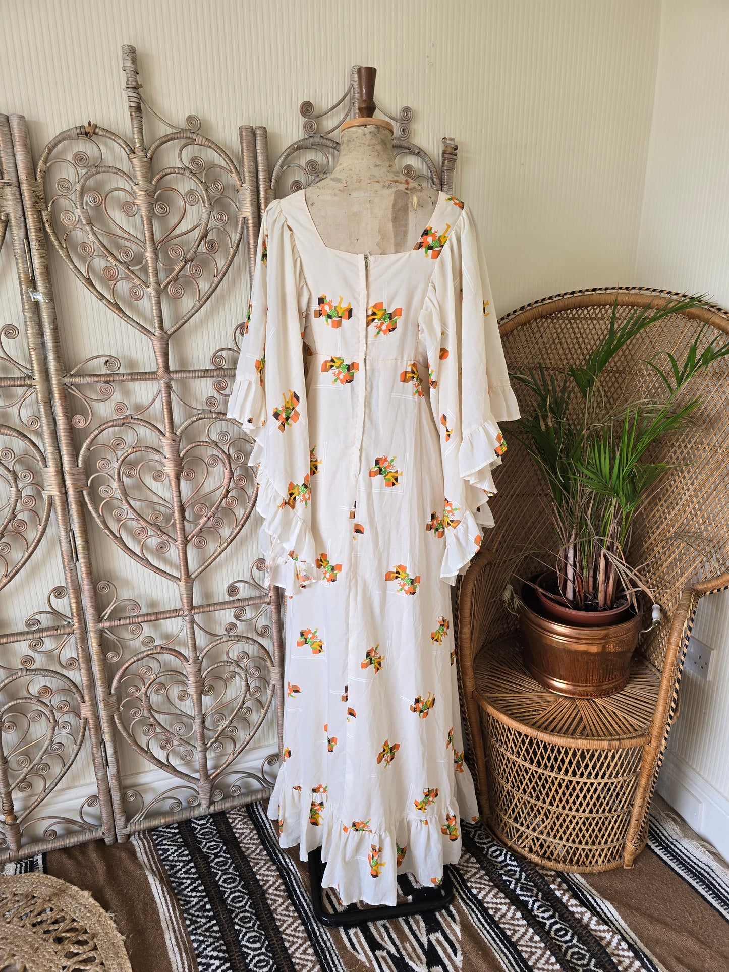A 70s angel sleeved dress. Fastens at the back with a zip