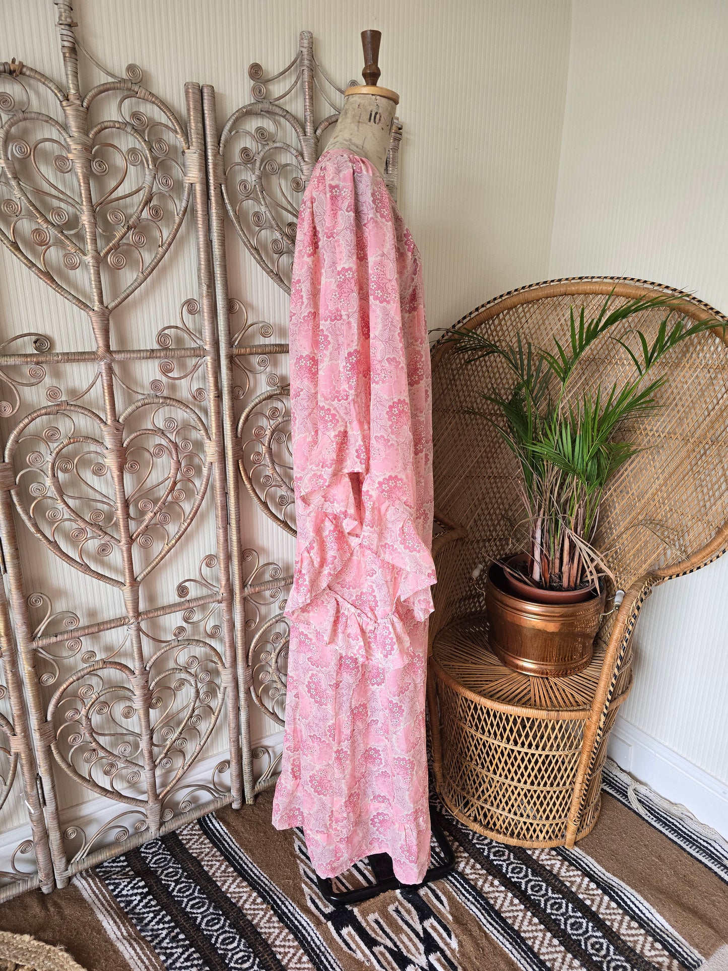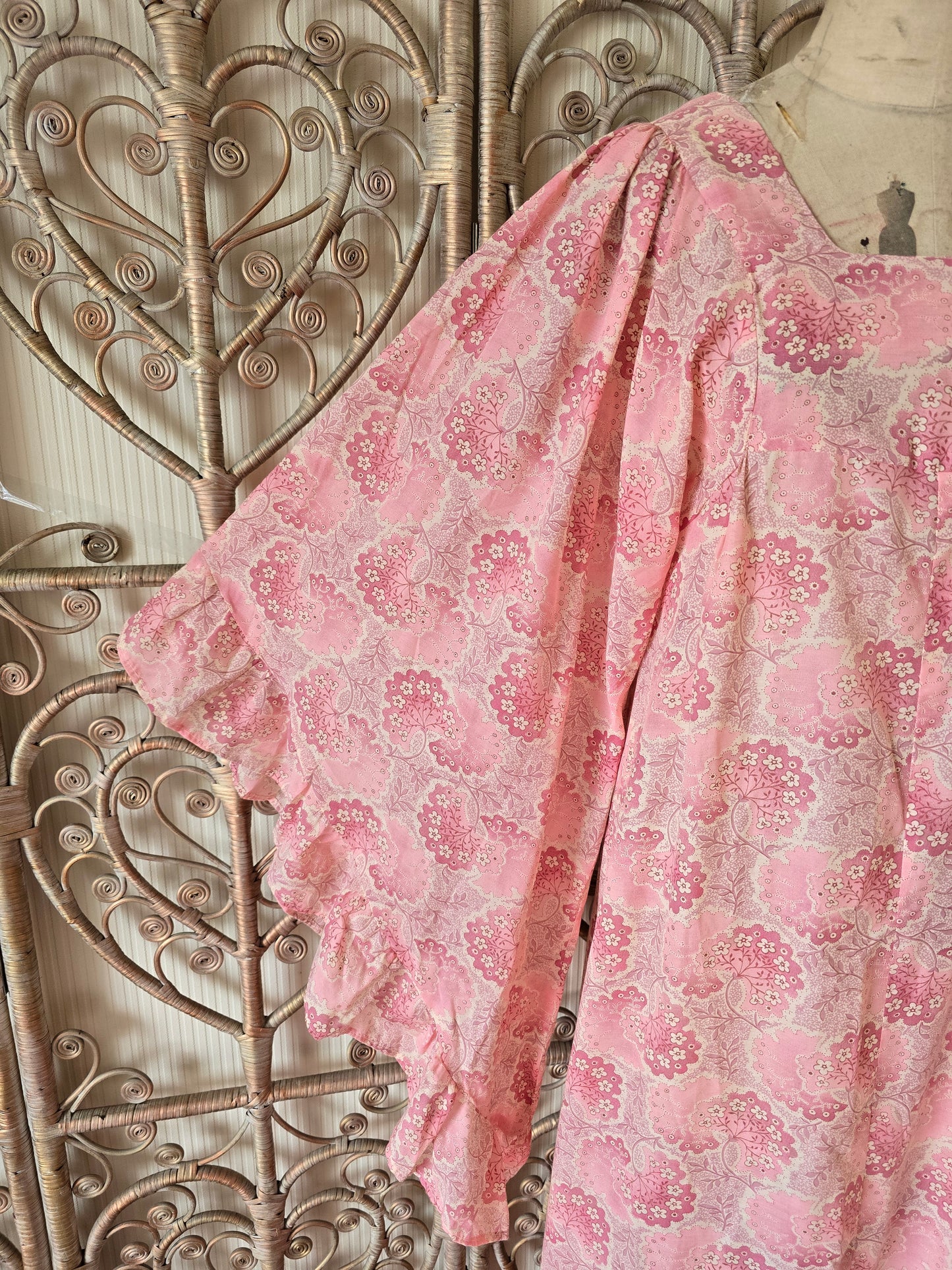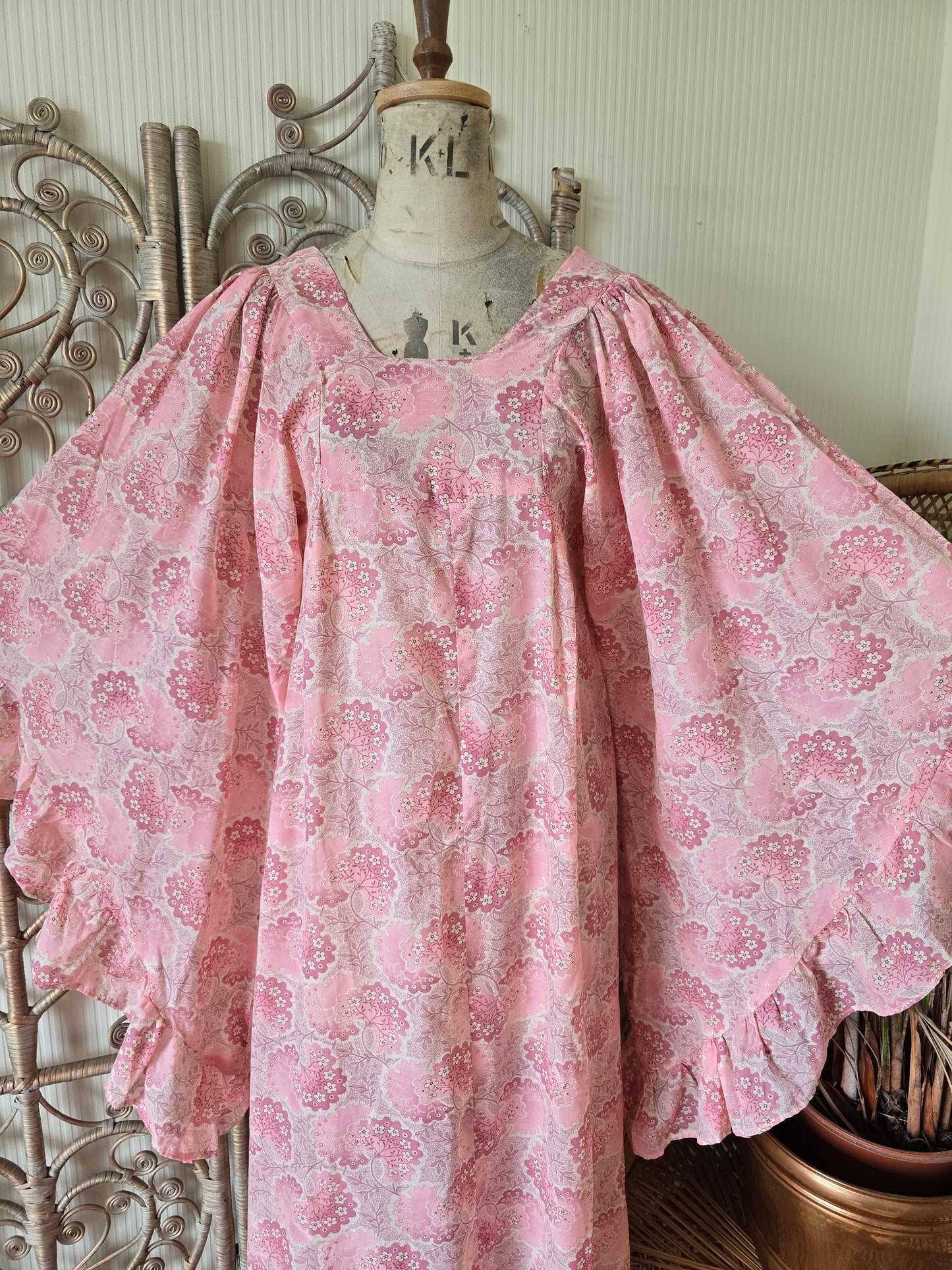 A 70s angel sleeved dress. Fastens at the back with a zip. Handmade