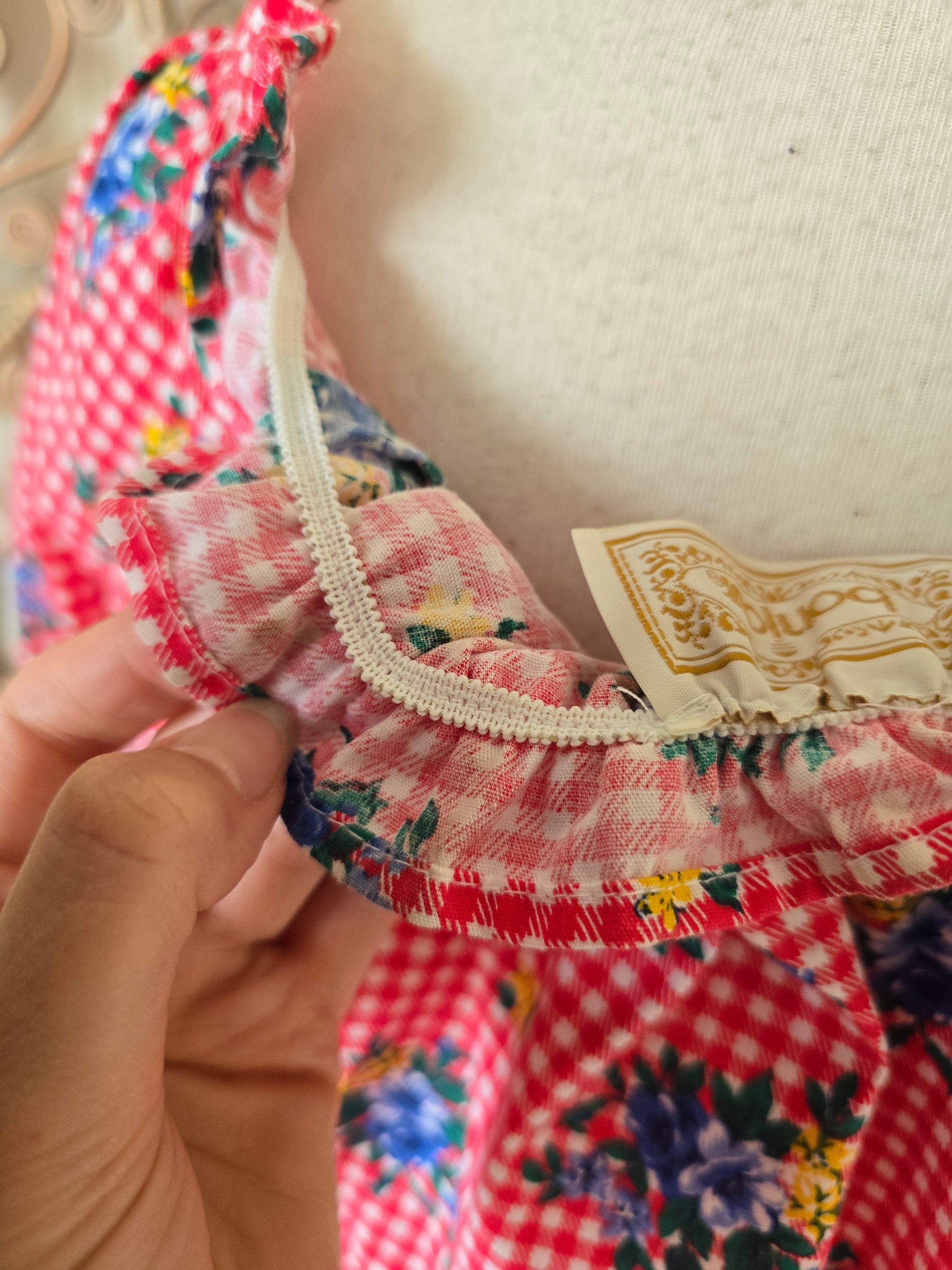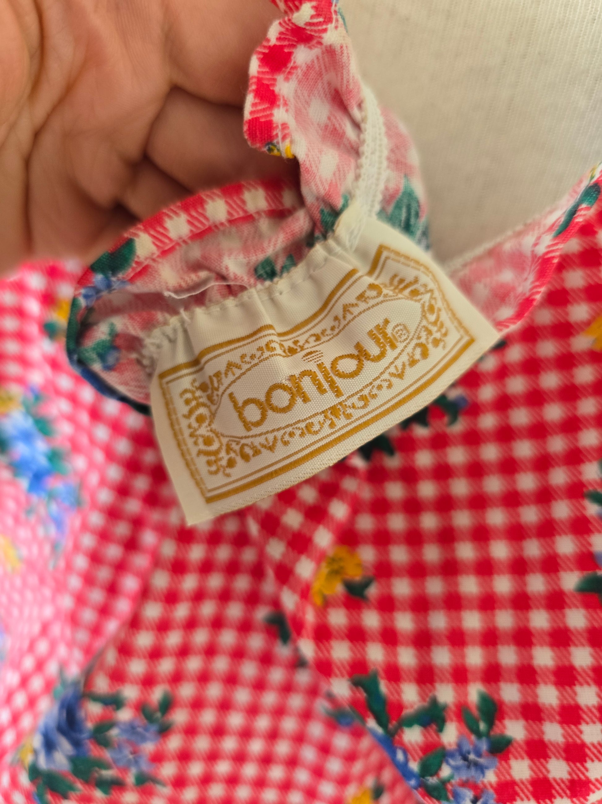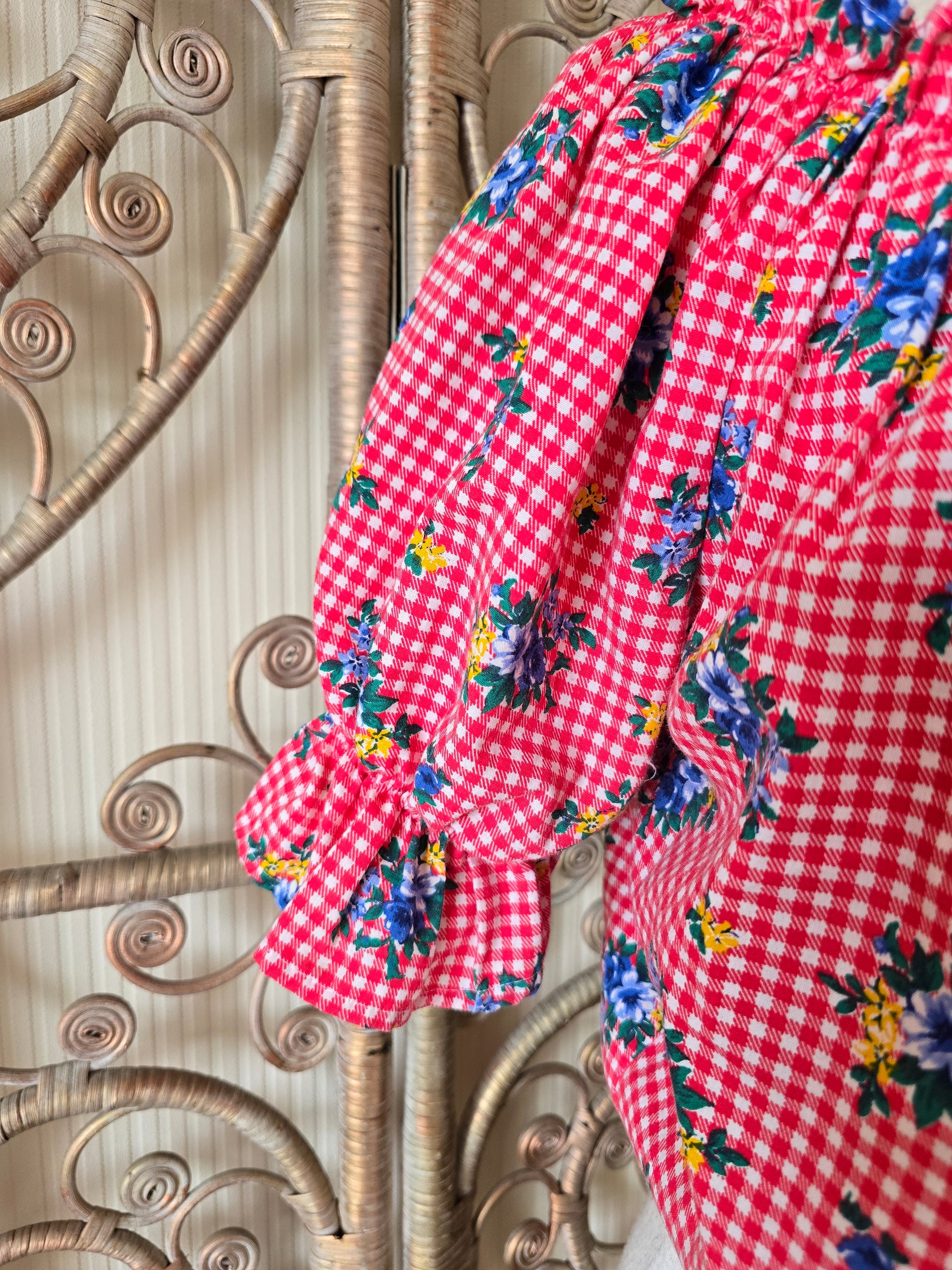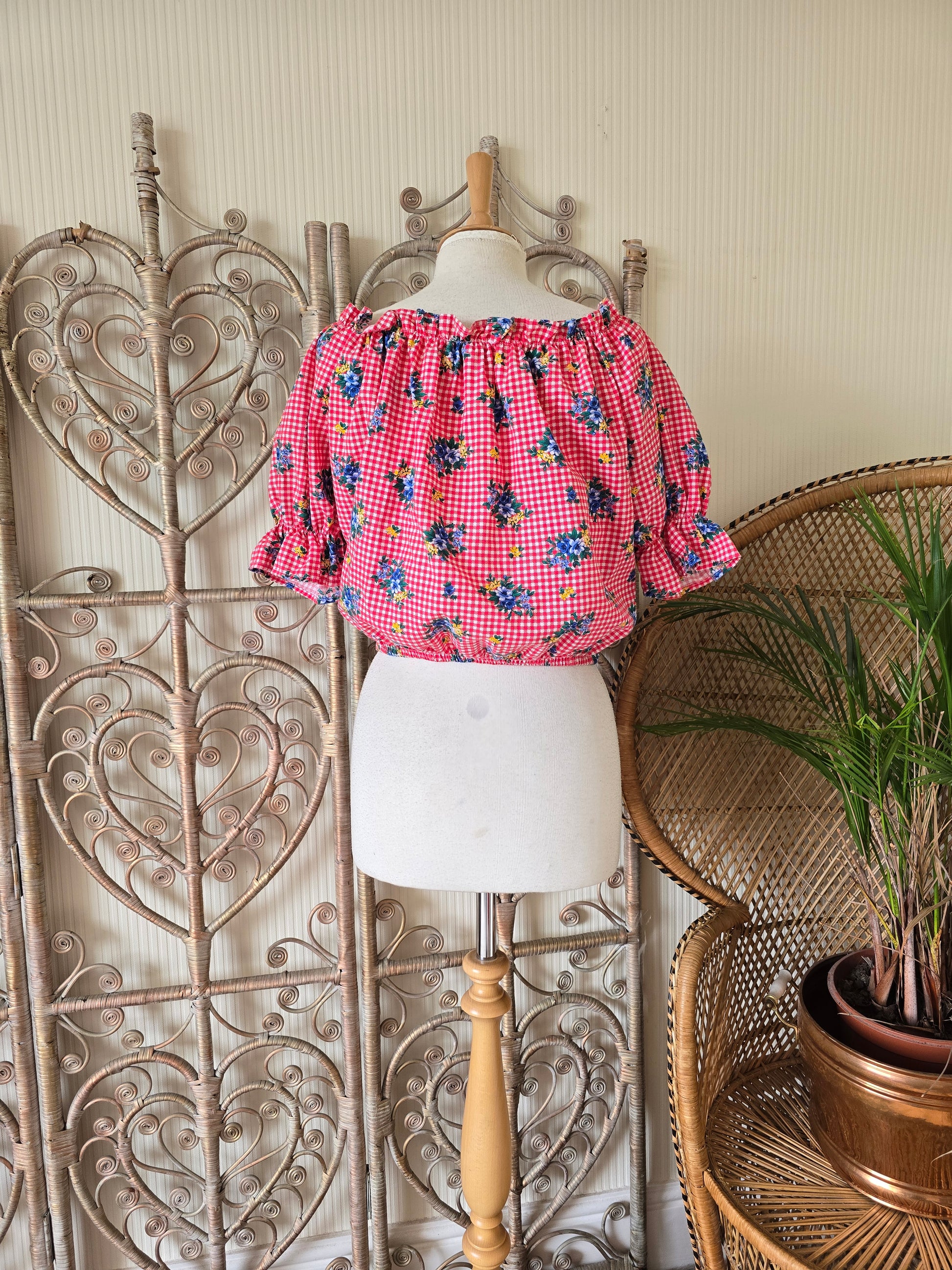Vintage check tie off shoulders blouse L XL