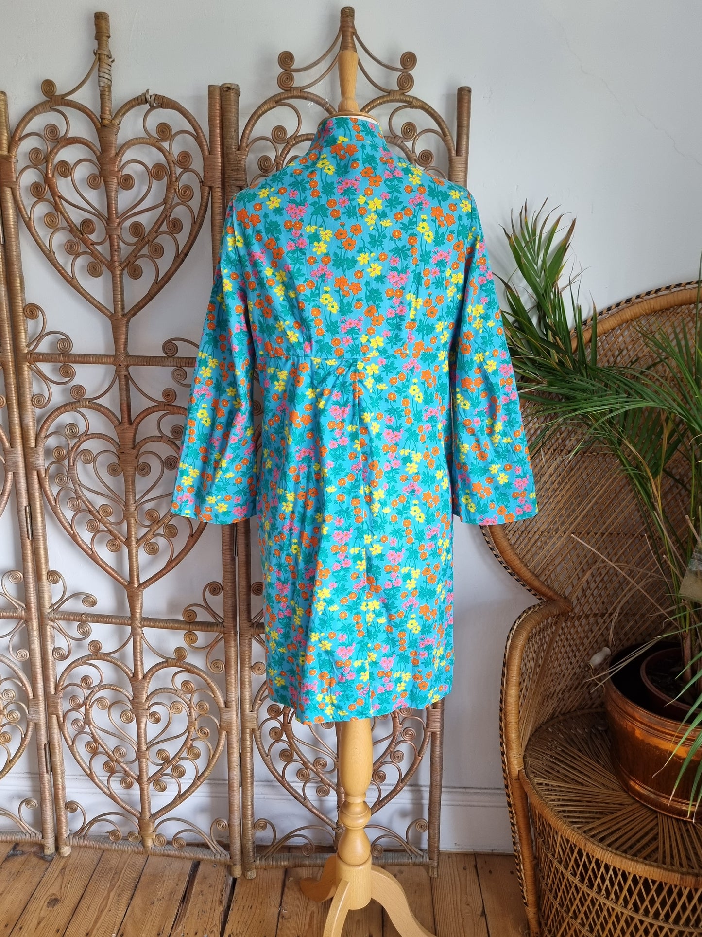 A jacket fastens with buttons at the front. If you add hooks it might be worn as a dress ?