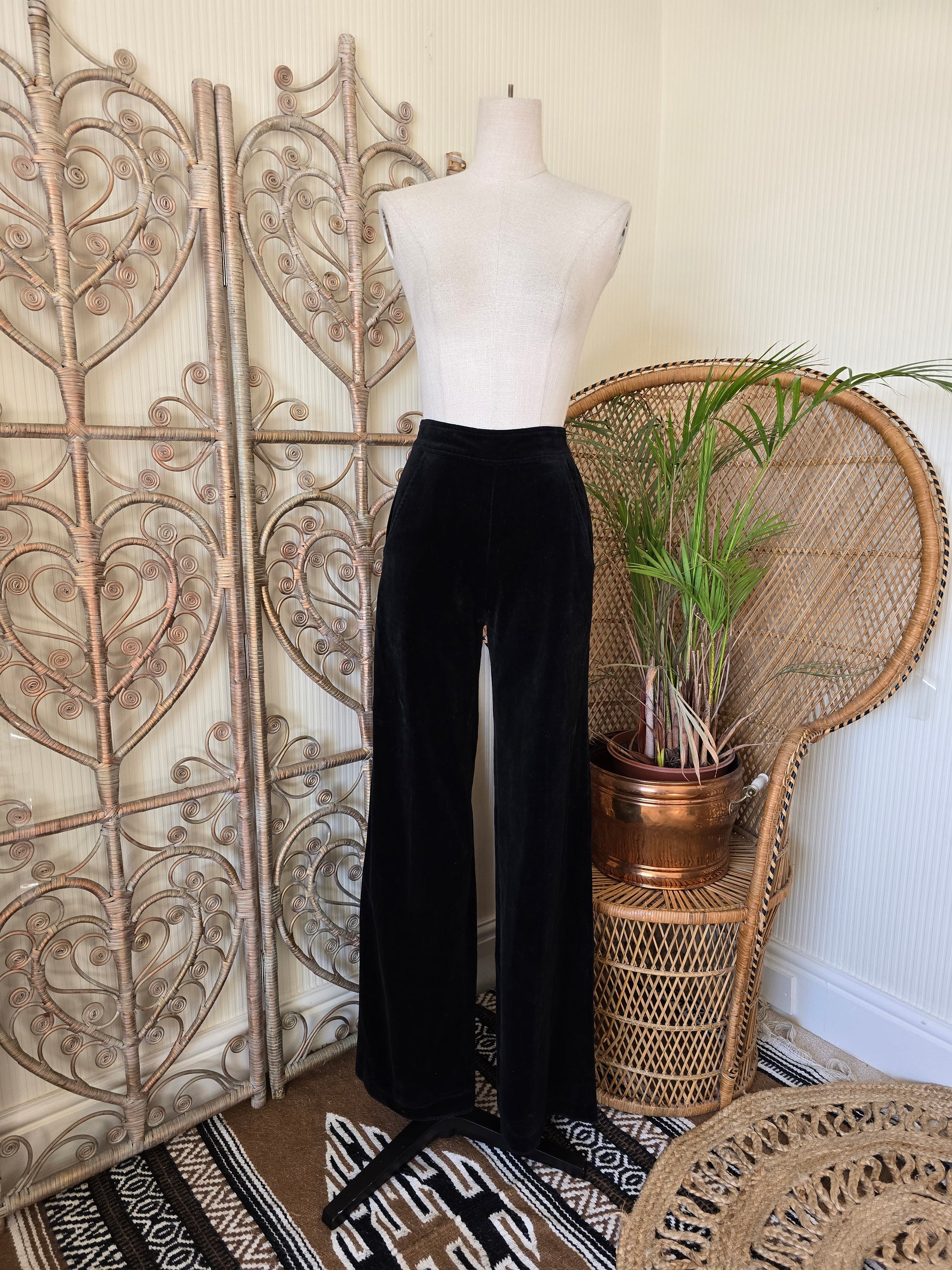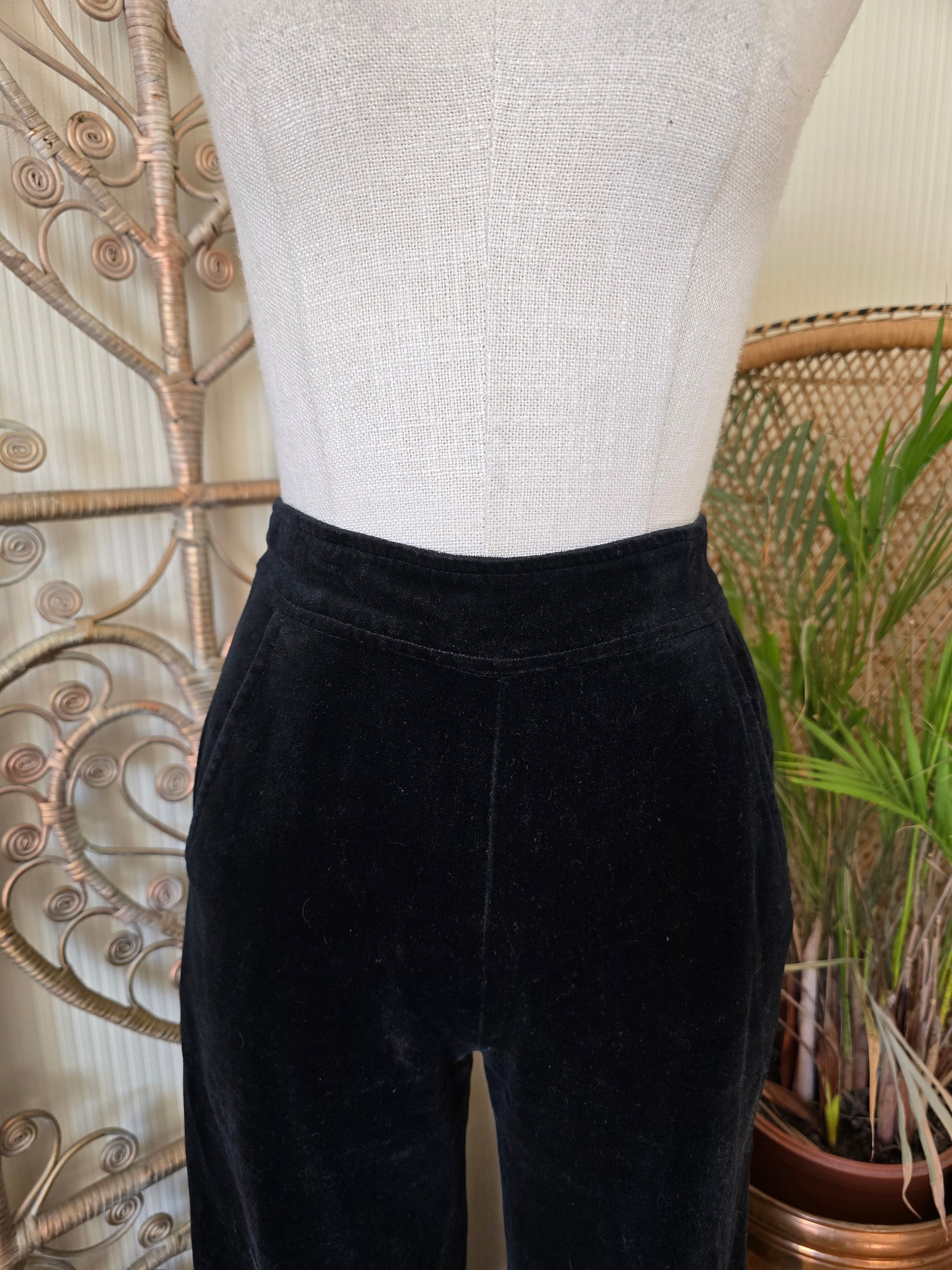 Vintage black velvet Just Jon flares 60s 70s trousers XS