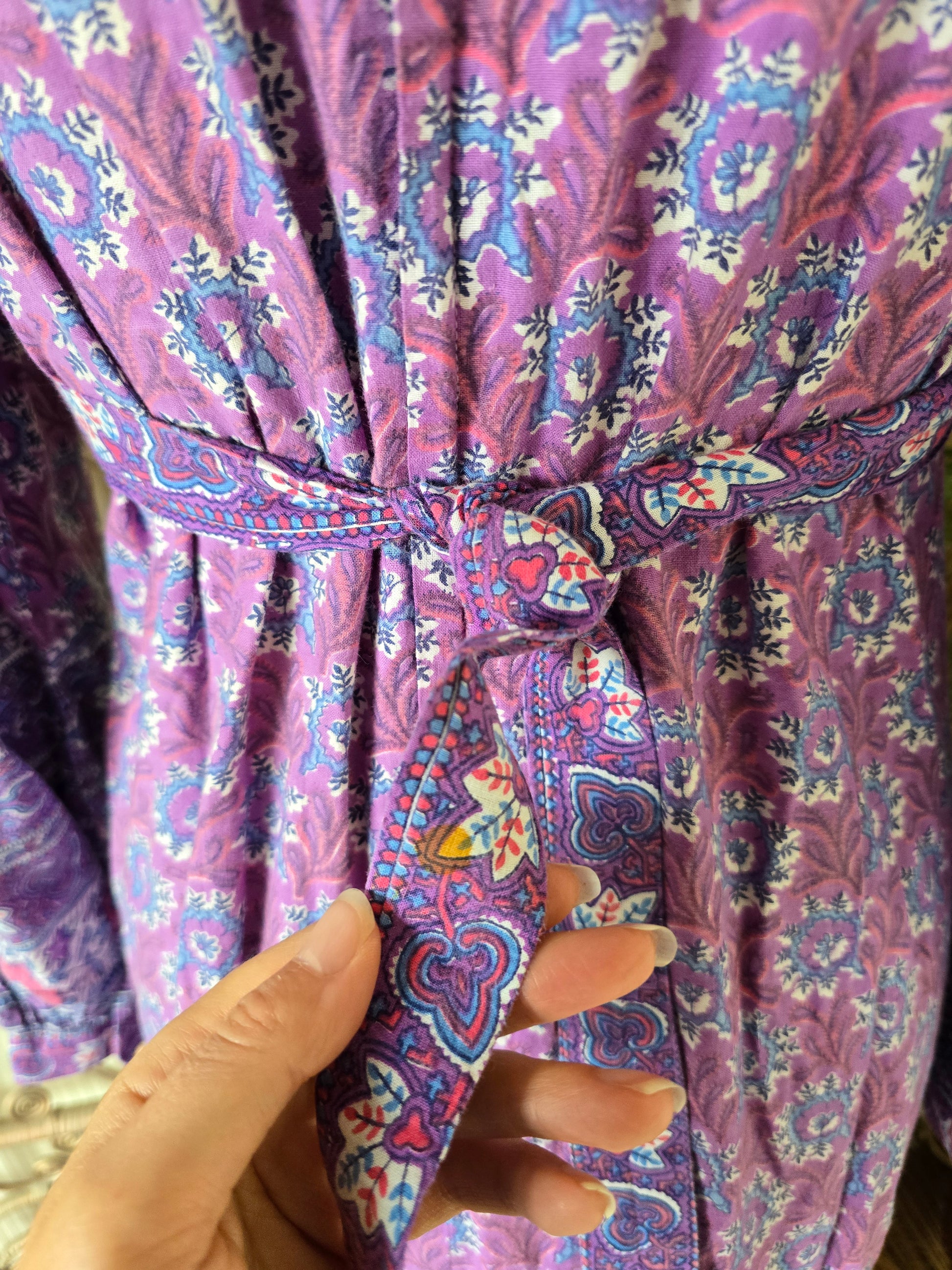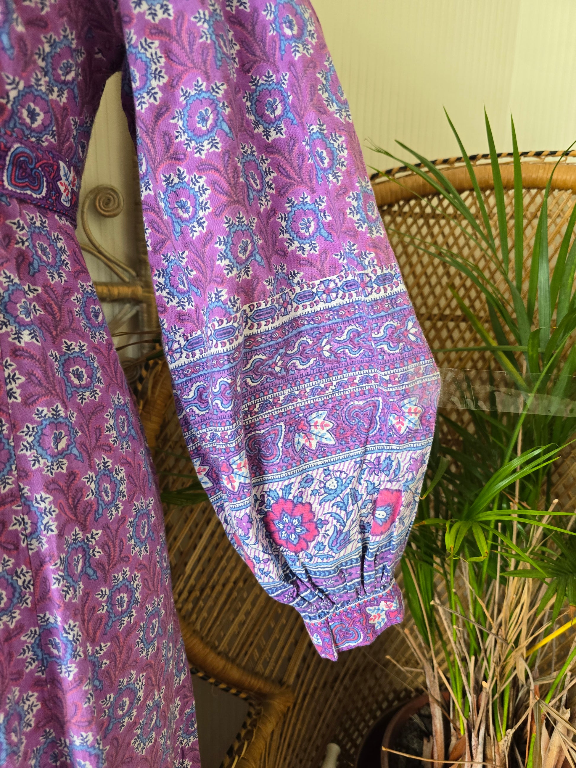 A vintage indian dress. Fastens at the back with a zip.