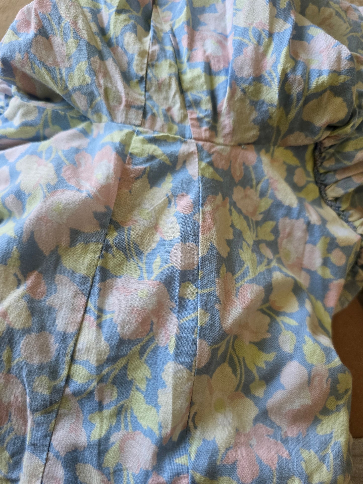 This looks like it's been made bigger at the bodice under the arms. Look at photos its been done professionally.