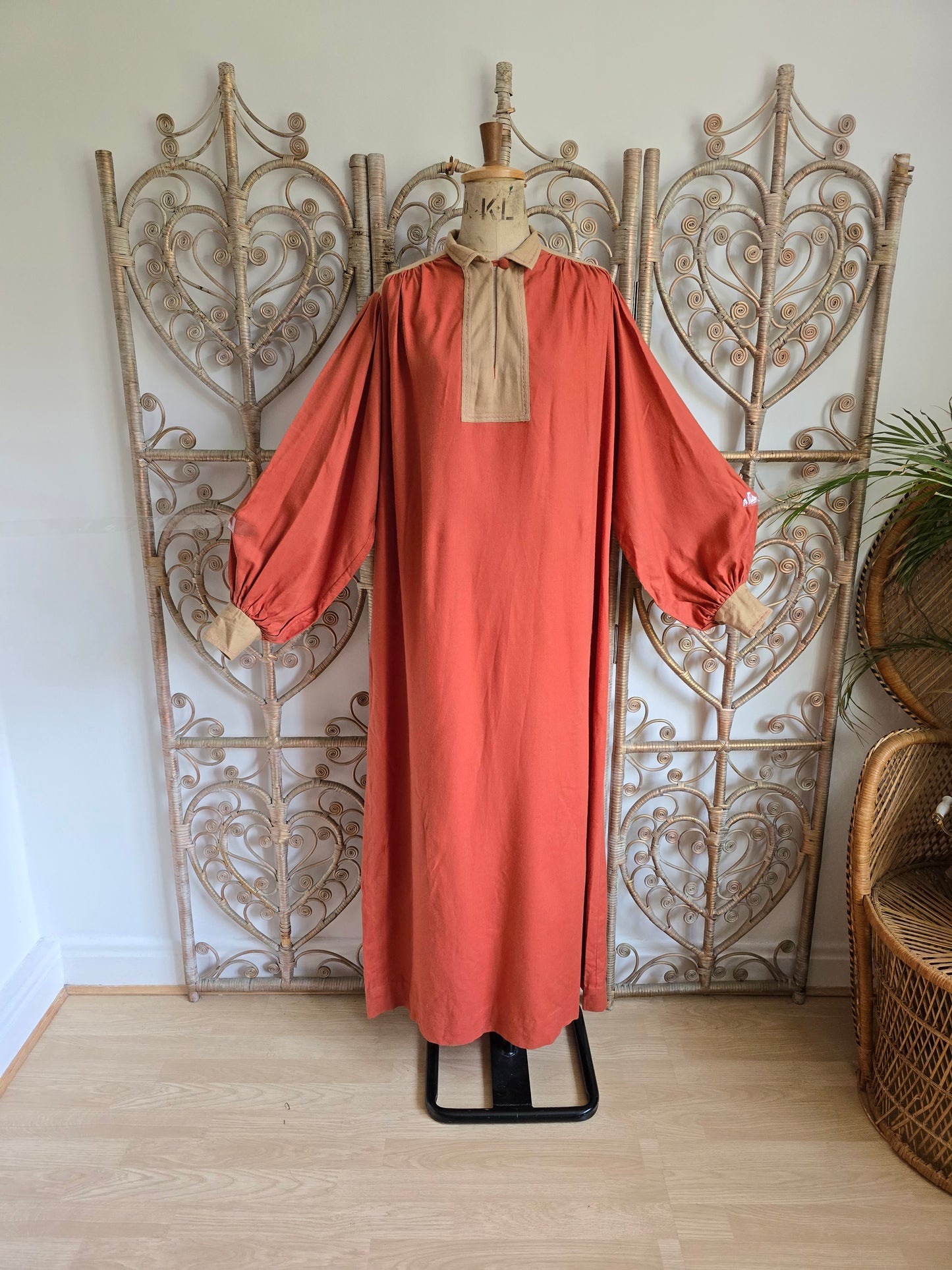 Vintage wool/cotton smock maxi dress