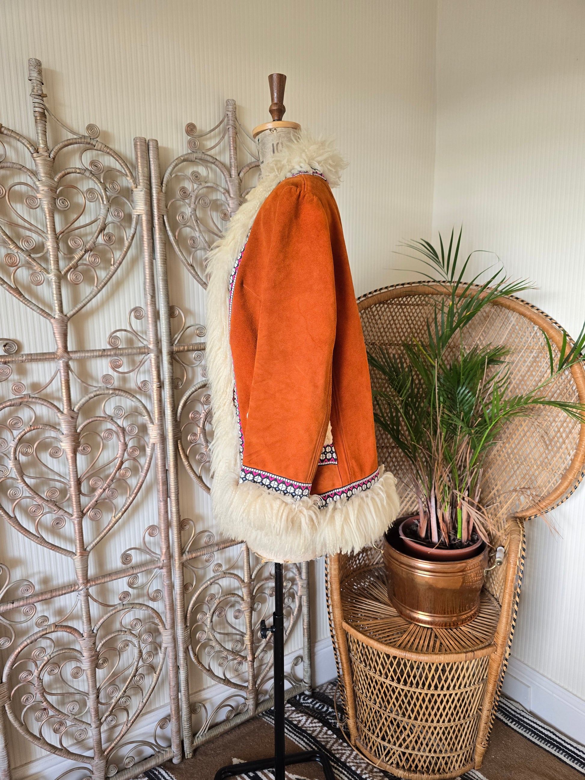 Vintage embroidered suede coat