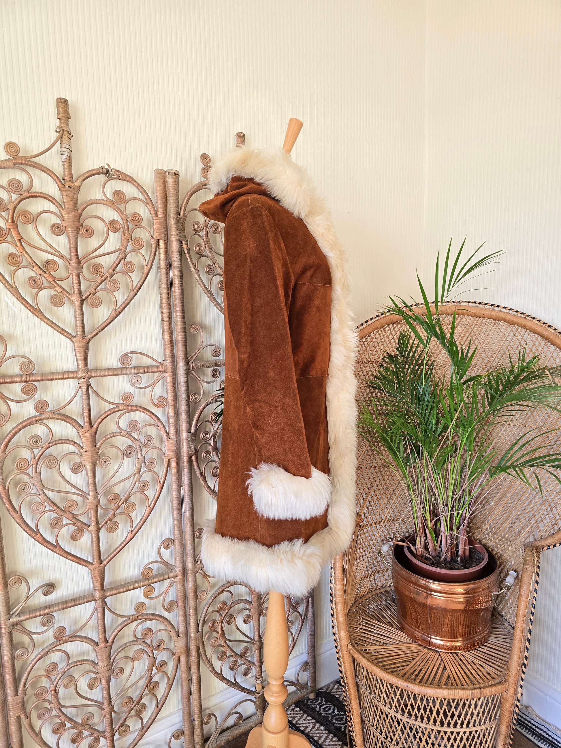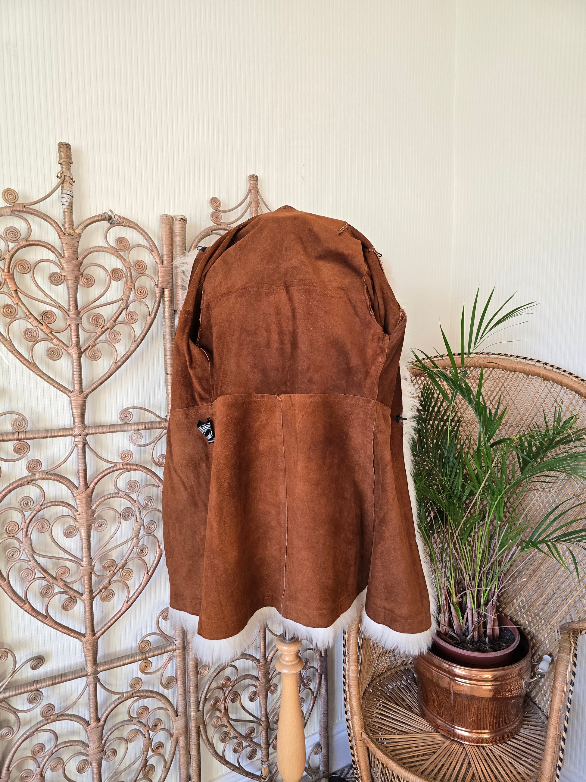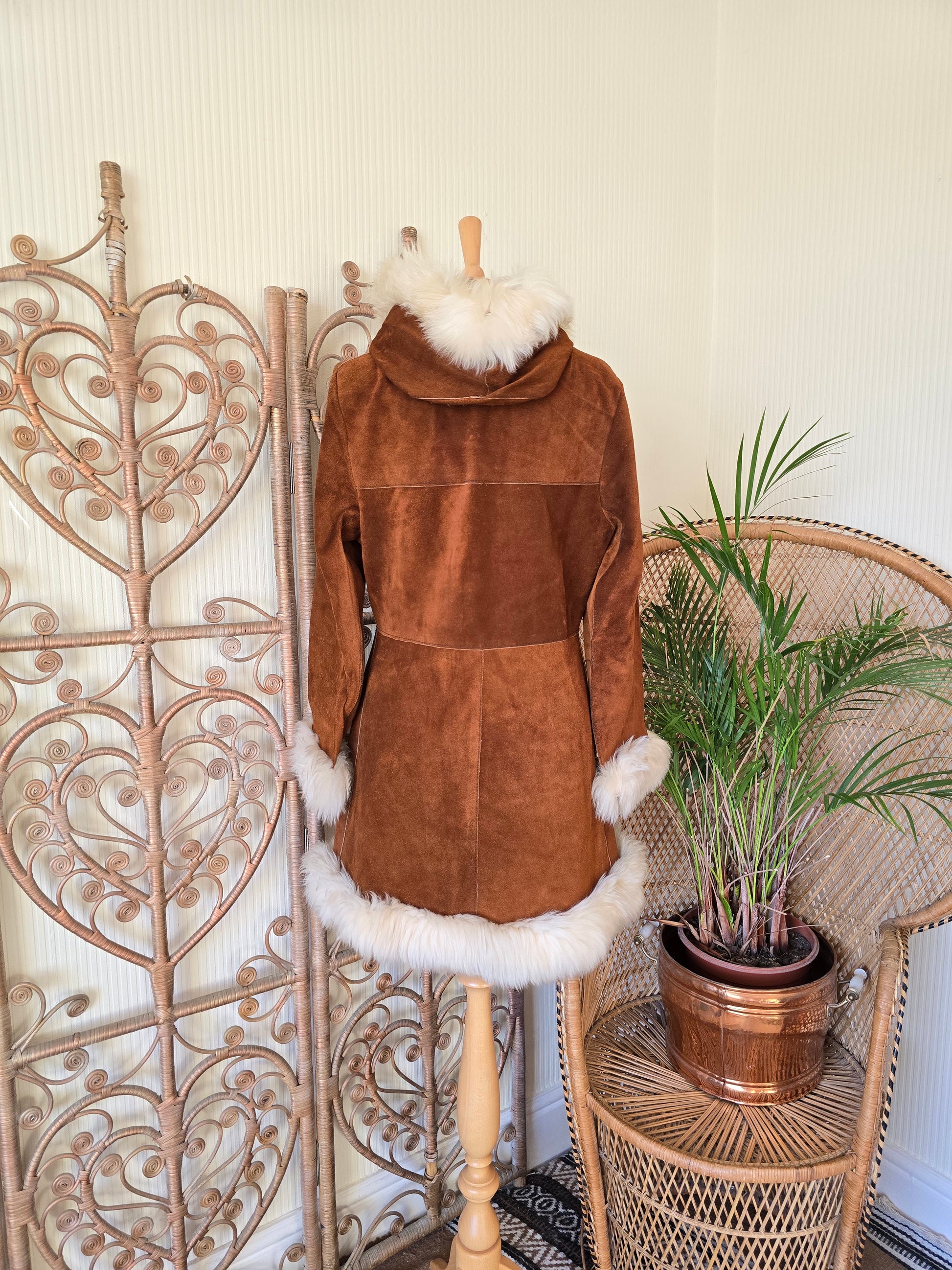 Vintage suede hooded coat S
