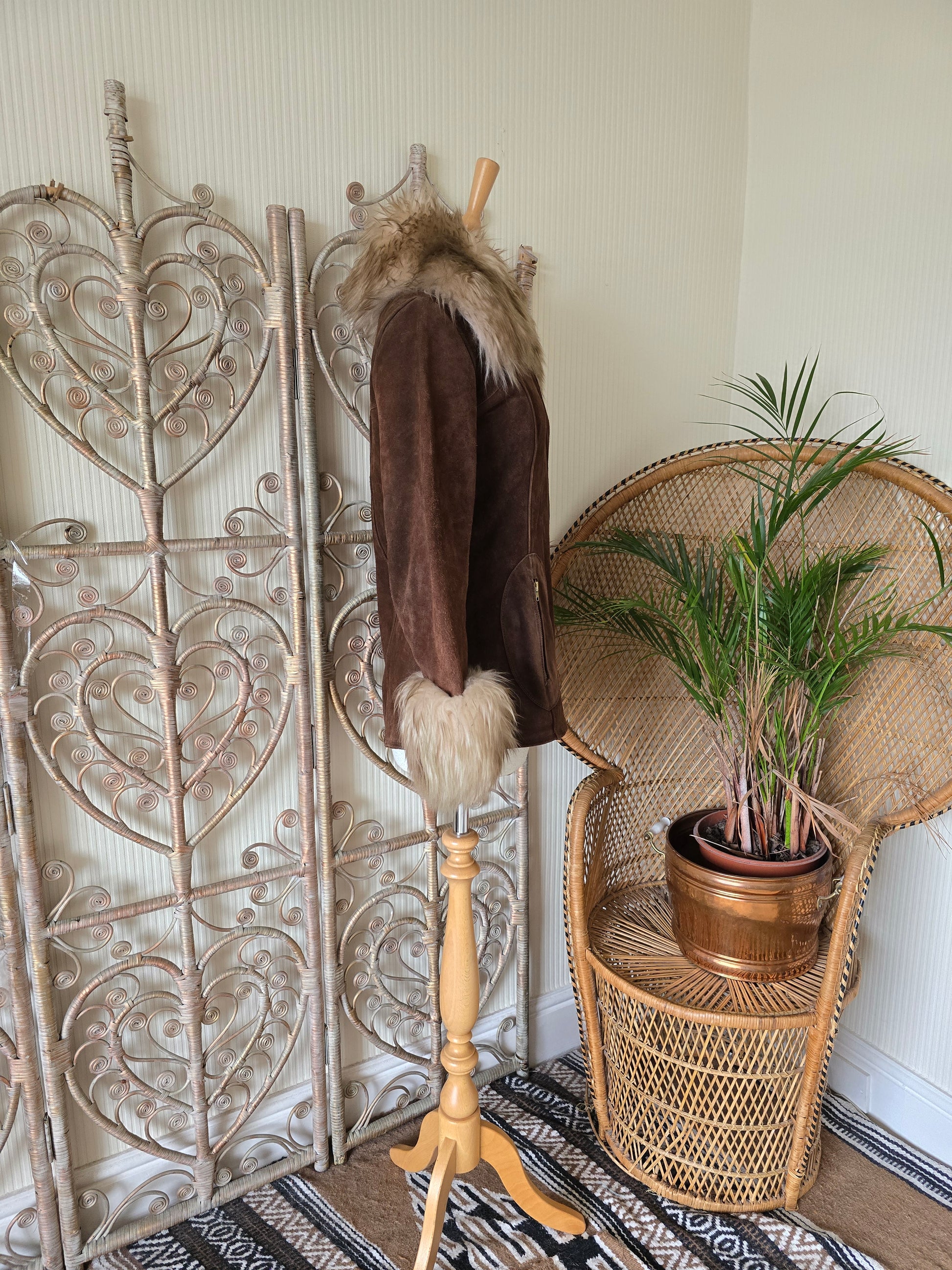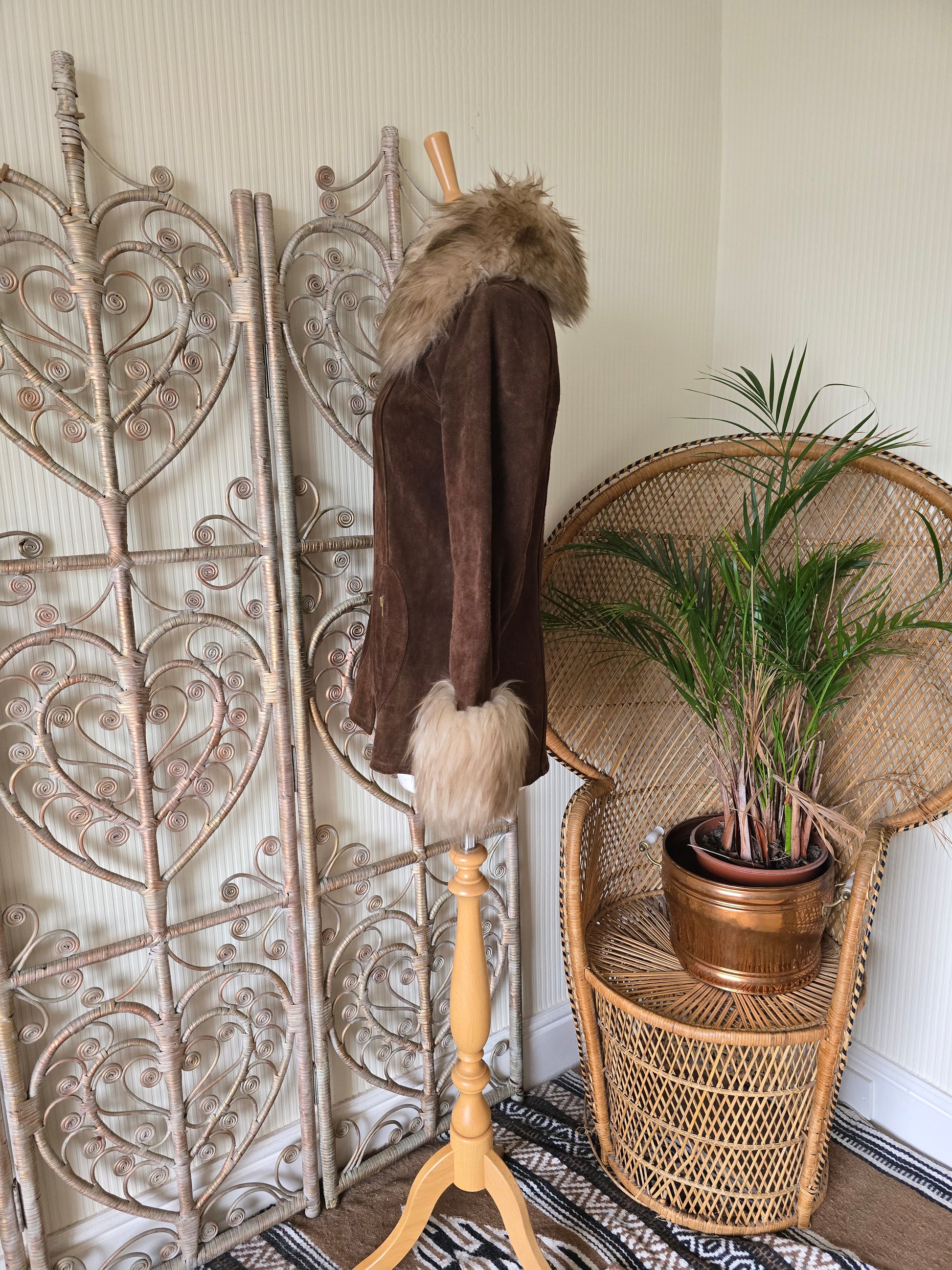 Vintage suede Sheepskin collar cuffs coat