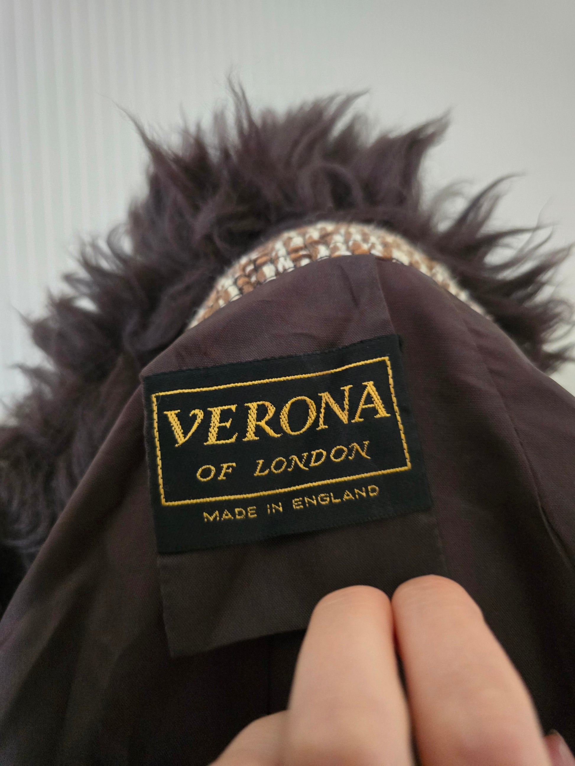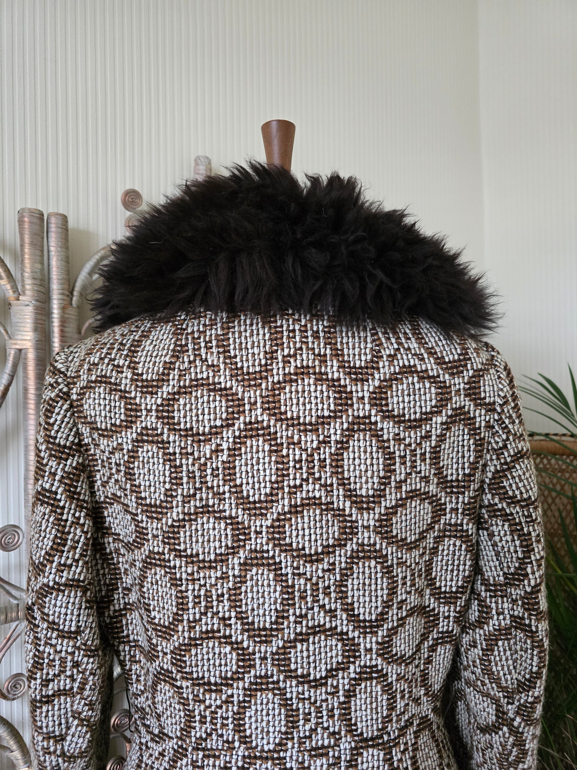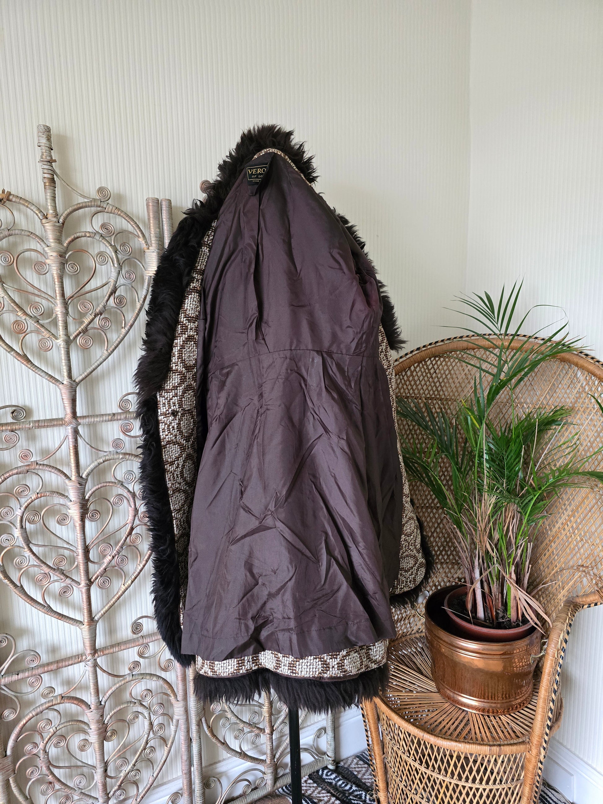 Vintage tapestry sheepskin trim coat